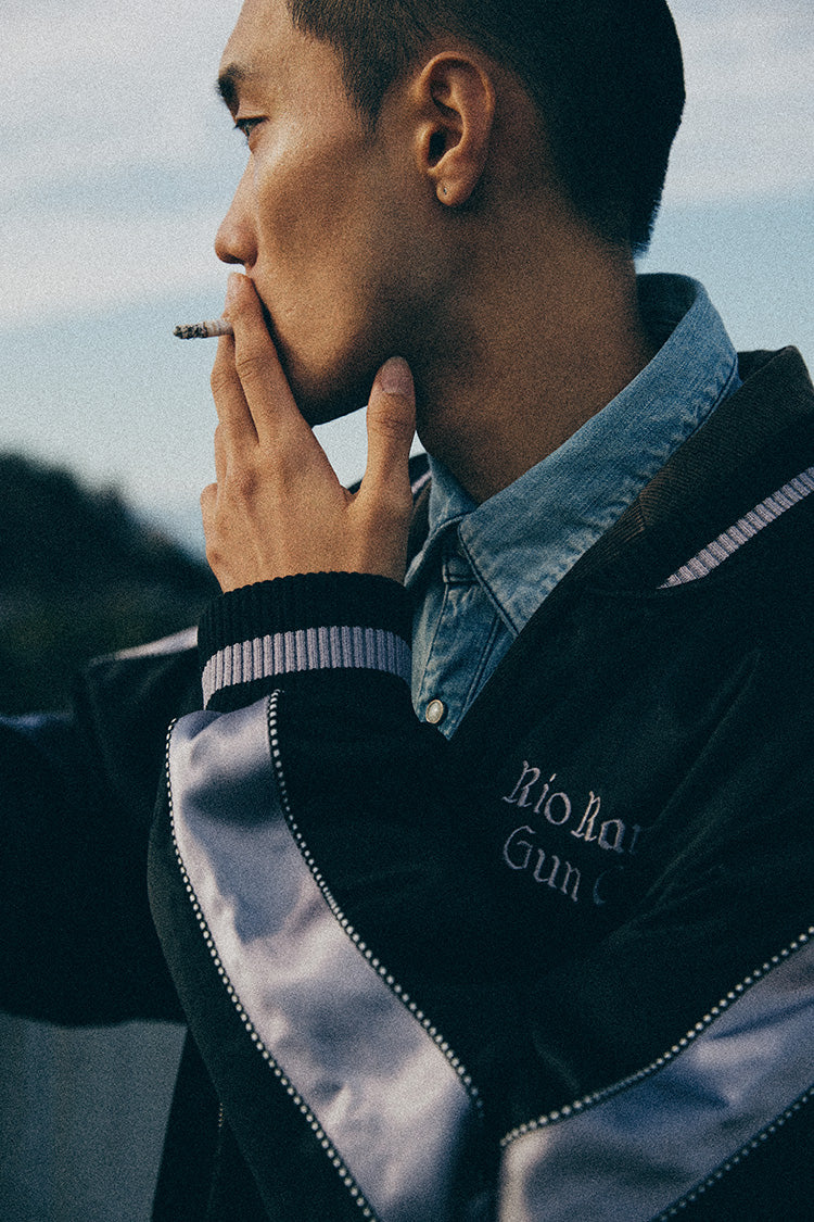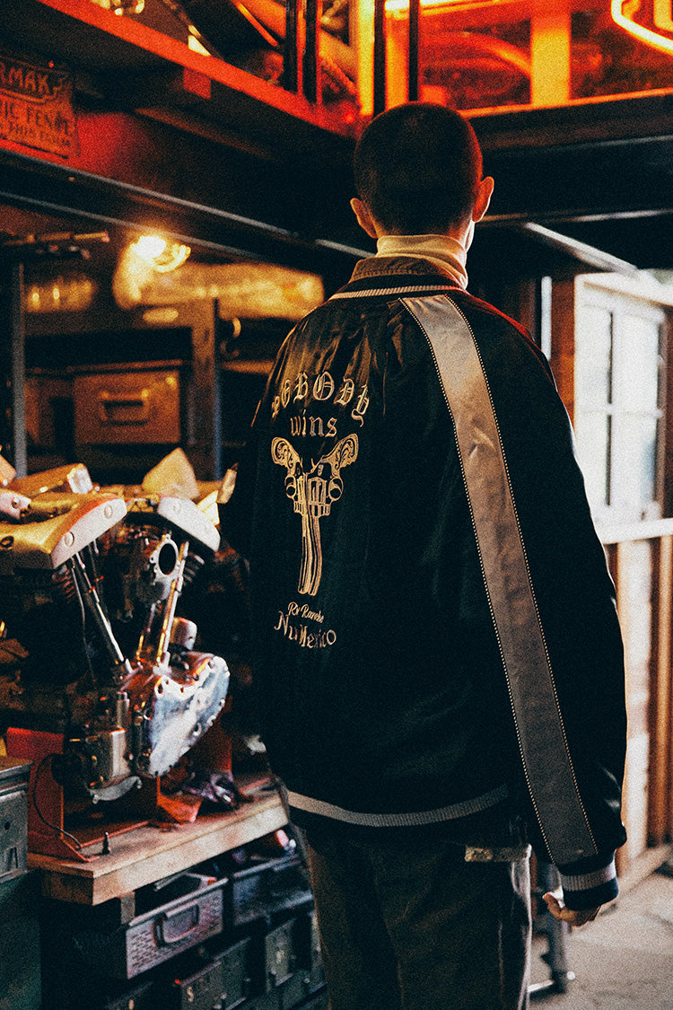 メキシカンテイストとスカジャンの融合が今回のテーマ。スカジャンが持つ繊細な刺繍のディテールはそのままに彼の地からインスパイアを受けたフォントや絵柄を大胆にデザインに取り込んだ。