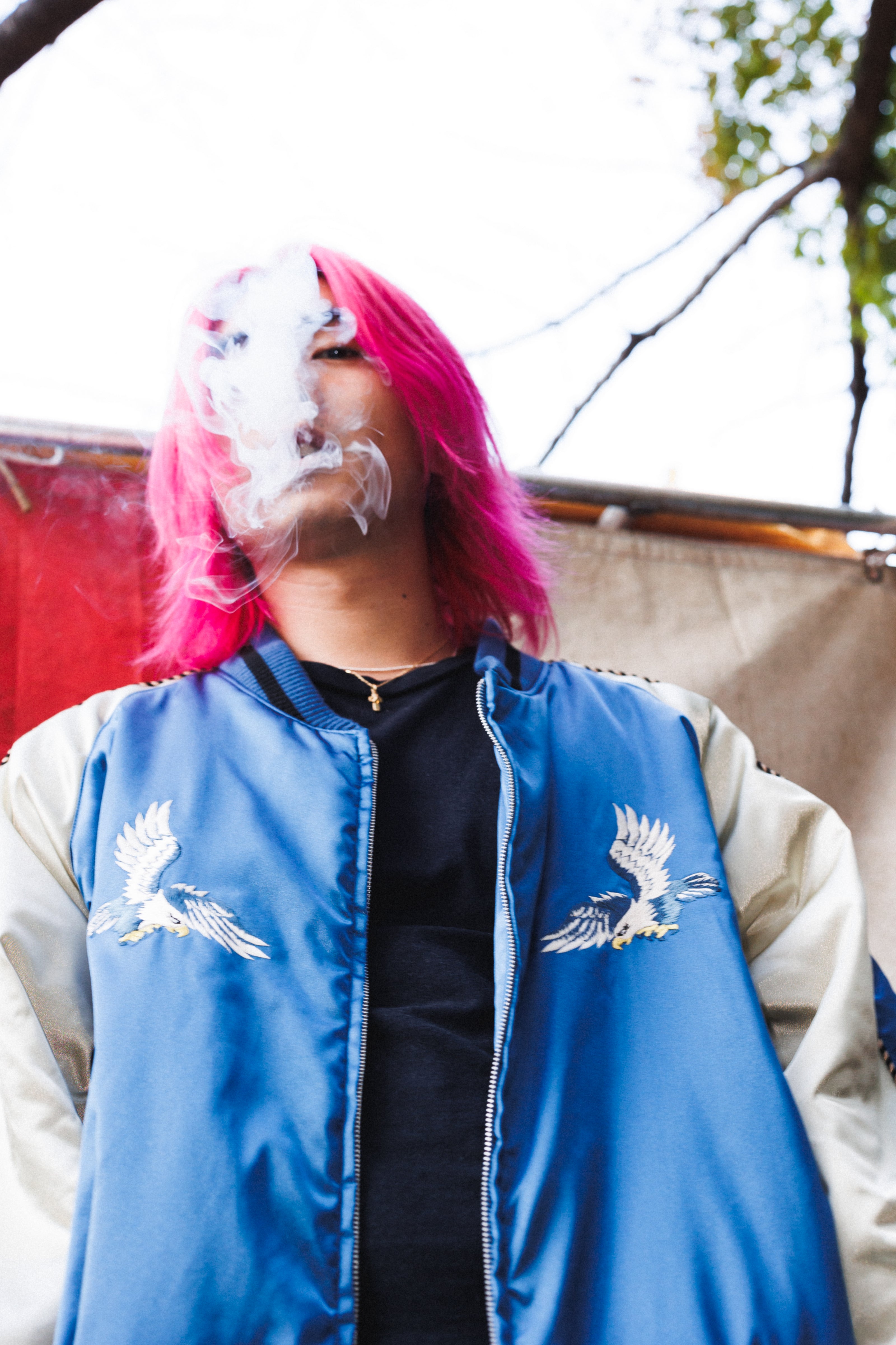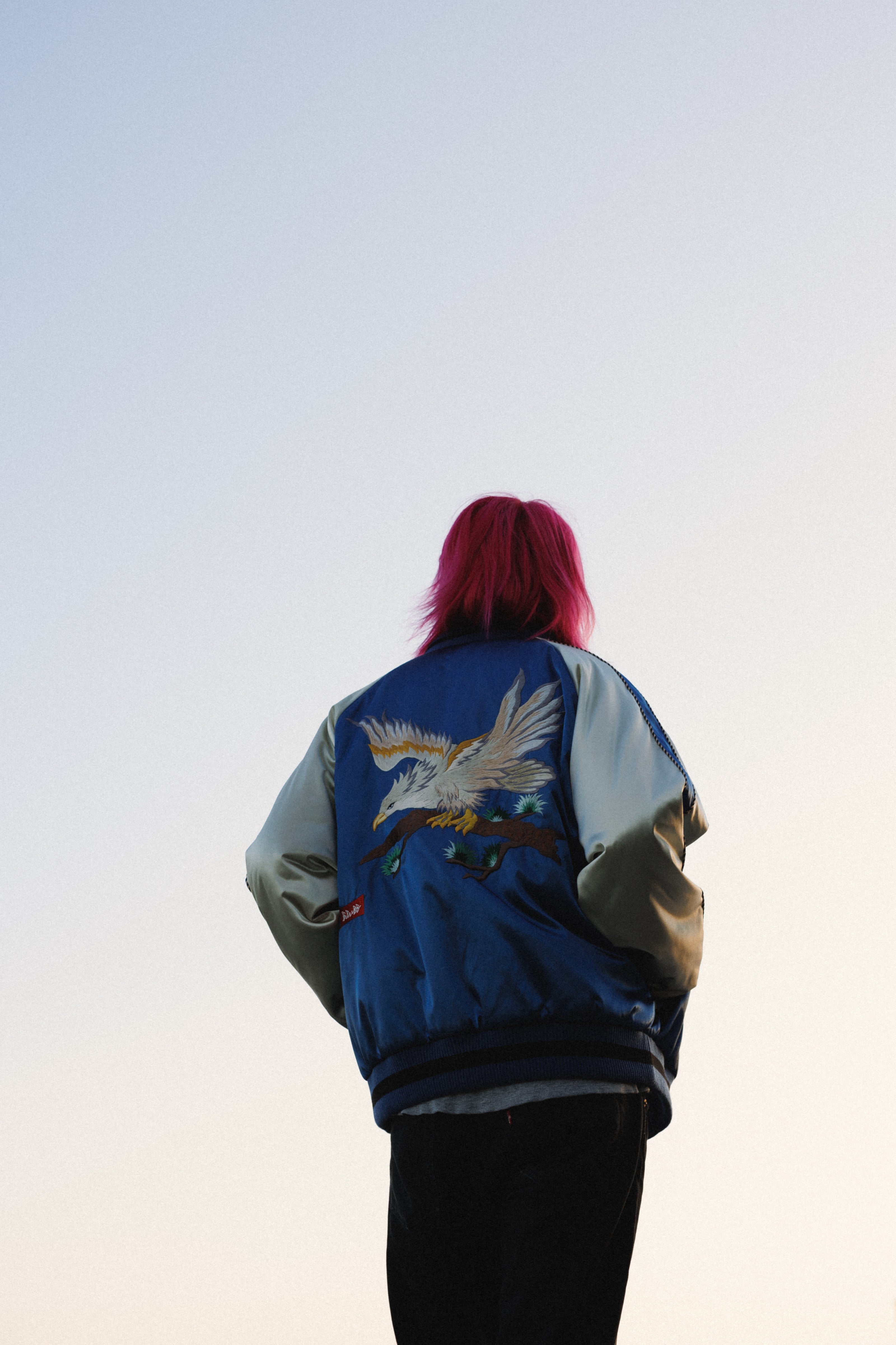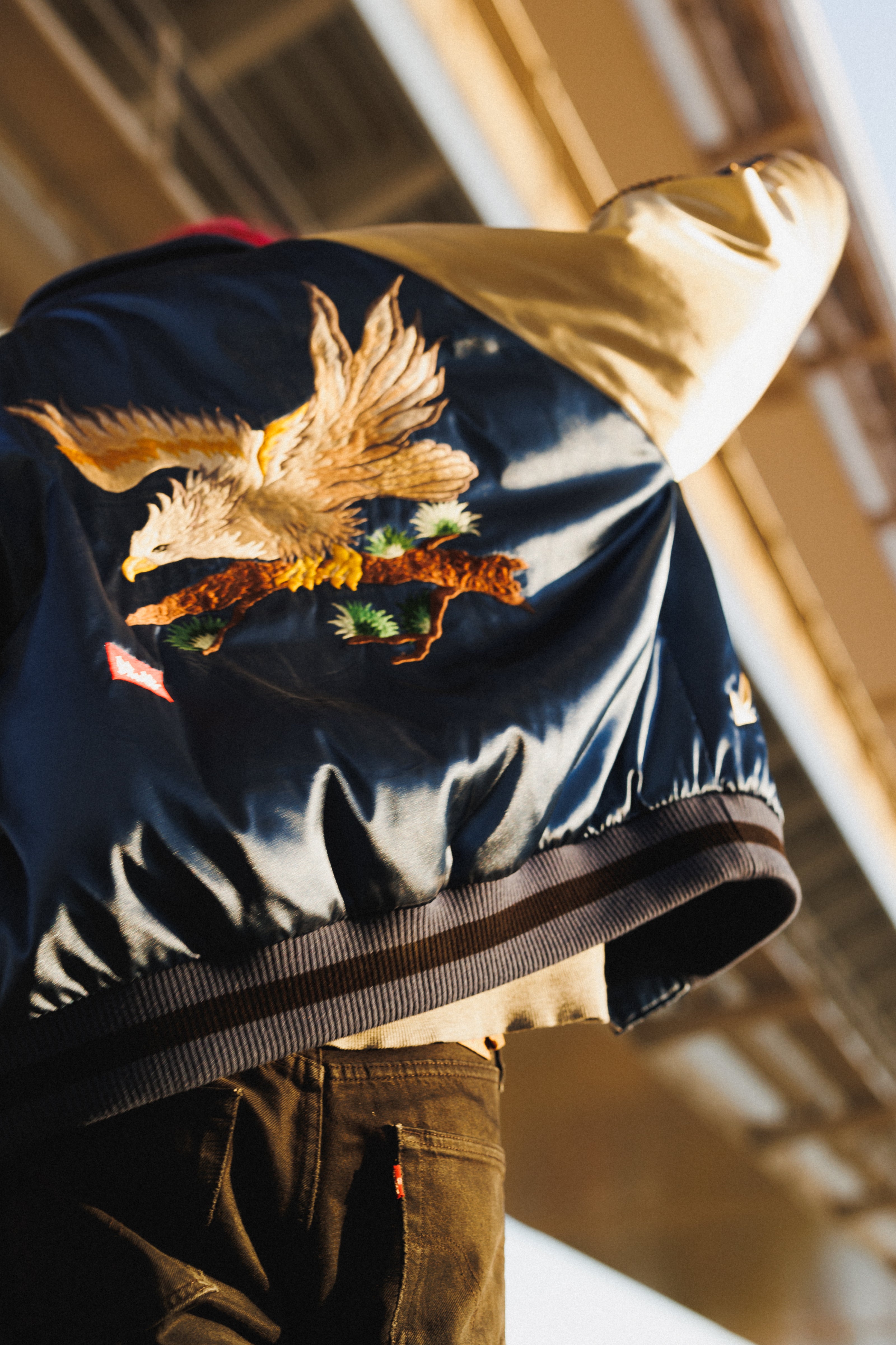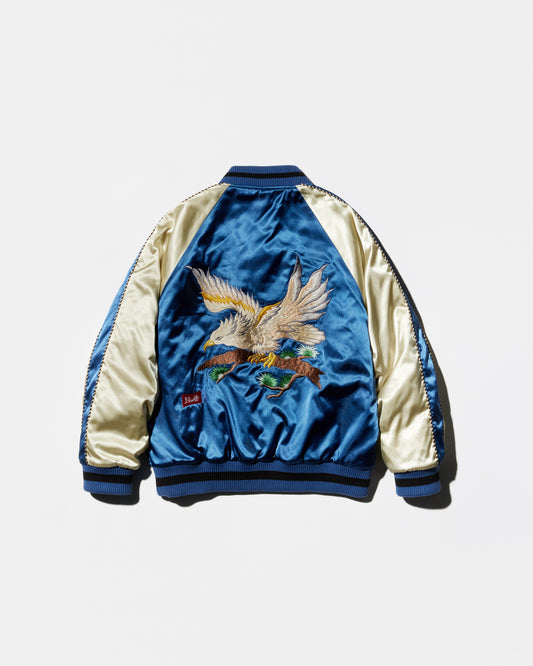 スカジャンの顔である背面の刺繍。シグネチャーとなるJAPAN MADE SOUVENIR JACKETには、幾多の候補のなかから凛々しく美しい鷹のモチーフを選択した。